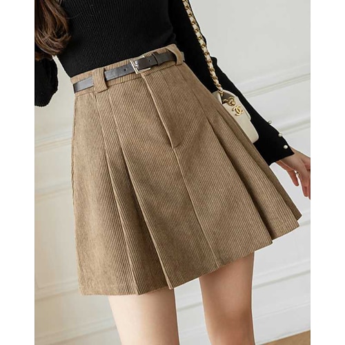 Per donna Casual Mini Vita Alta Gonne Semplice Arricciato Pieghettato Inelastico Quotidiano Streetwear Nero Cachi Caffè Autunno Velluto a coste Poliestere