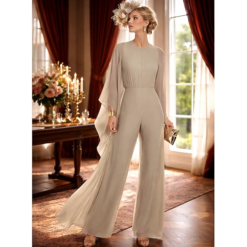 Tuta Completo Pantalone Lunghezza al pavimento Abito da cerimonia per signora Manica 3/4 Girocollo Elegante Semplice Minimalista Formale Ospite di nozze Chiffon con Arricciato