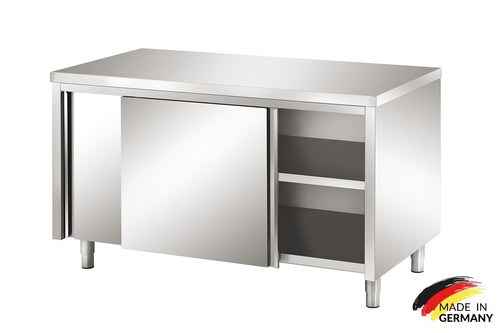 VM Europa Edelstahl Arbeitsschrank mit Zwischenboden - alle Größen montiert: 140 x 60 cm / ohne Aufkantung / fertig montiert