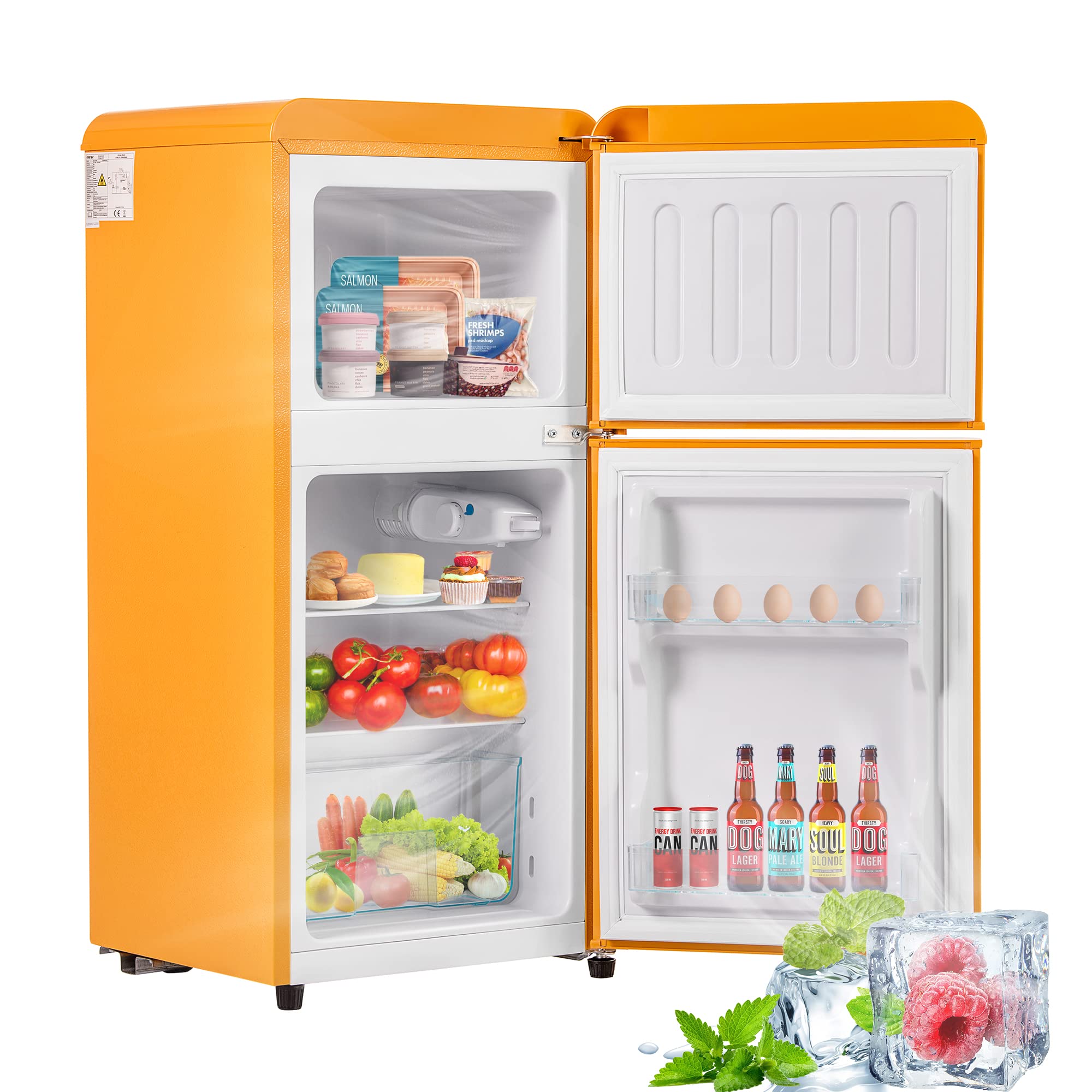 Kühlschrank mit Gefrierfach, Kühl-Gefrierkombination, 60 Liter Doppeltür Kühlschrank, 22L Gefrierschrank, 45dB, LED, Gemüsefach, Türablagen krämig fär