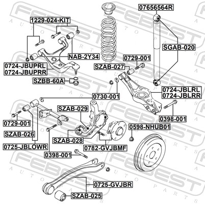 FEBEST Lagerung, Lenker SZAB-053 hinten rechts links für SUZUKI NISSAN 46300-83E10 46300-83EA0 46320-80010