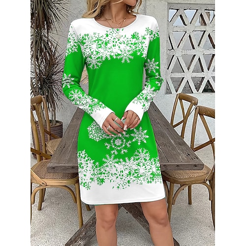 Abito mini di Natale donna maglietta abito abito a tee abito shift vacanza casual festività vestibilità regolare grafica maniche lunghe girocollo bianco vino rosso autunno inverno