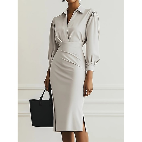 Per donna Abito Midi Abito aderente Abiti semi formali Ufficio Vestibilità regolare Semplice Manica Lunga Colletto a Camicia Nero Rosa Beige Grigio Primavera Autunno