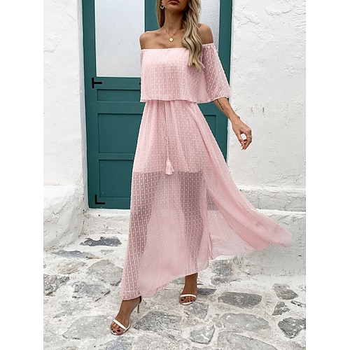 Per donna Abito Lungo Maxi Abito Vestito a ruota Abito Estivo Elegante Uscire Abito Estivo Vestibilità regolare Colore Puro Manica Corta Senza Spalle Nero Rosso Rosso rosa Albicocca Estate