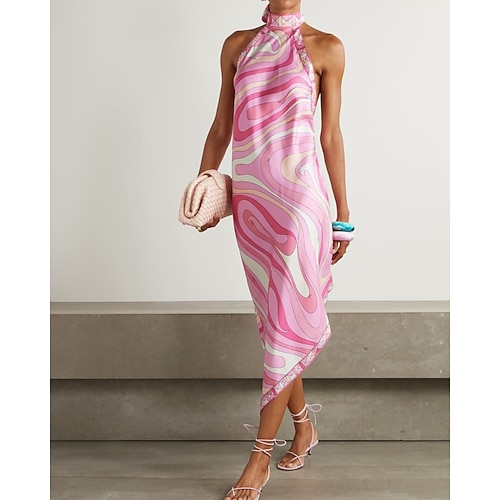 Per donna Abito Midi Abito in Raso Vestito Estivo Abito Estivo Abito Boho Moda Moderno Quotidiano Vacanza Uscire Vestibilità regolare Grafico Sole Senza Maniche All'americana Nero Rosa Estate