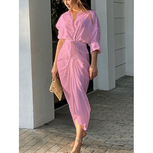 Per donna Abito lungo Abito lungo Abito chemisier Abito casual Abito estivo Moda Informale Da mare Giornaliero Appuntamento Standard Color Block Manica lunga Bavero Nero Giallo Rosa Rosso Estate