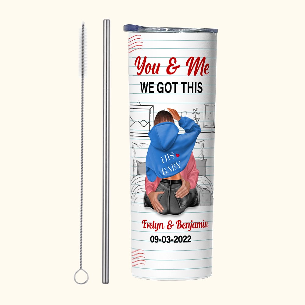 Personlig You & Me 20oz Stainless Steel Skinny Tumbler med namn och lock Sugrör Borste Alla hjärtans dag-present för par
