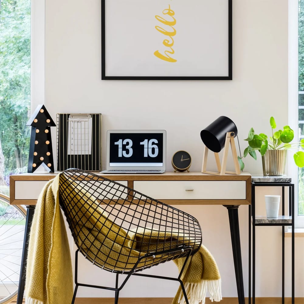 Lampada da ufficio legno ;Alt.30cm natural ;Paralume: nero