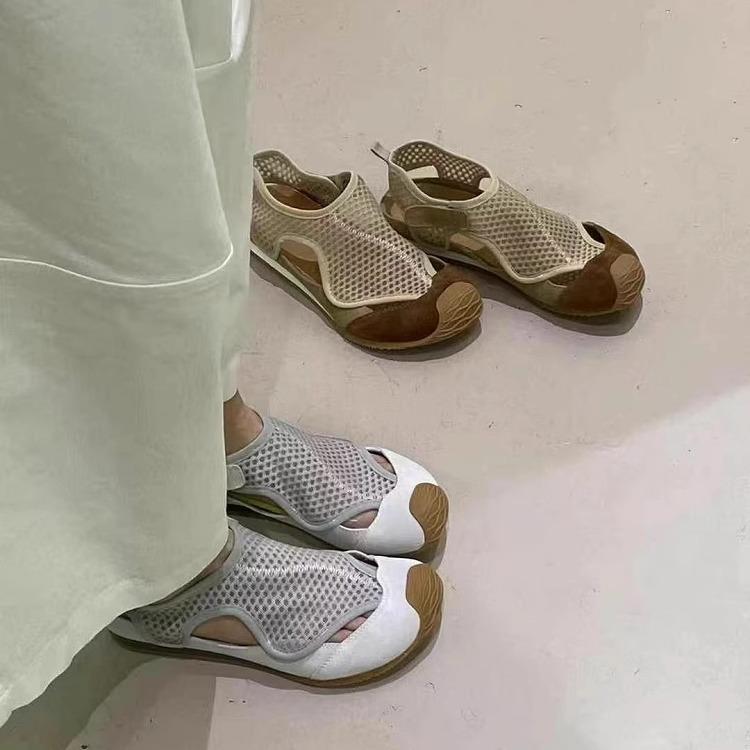 Korean version of the new one-pedal lazy Velcro casual sports shoes bag head mesh hollow breathable sandals German training shoes cm