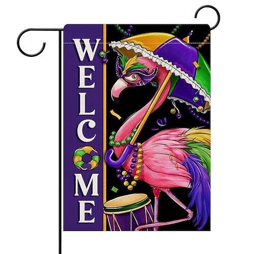 Confezione da 2 bandiere da giardino per il martedì grasso, 12x18 pollici, doppia faccia, bandiera da casa con giglio viola, verde e oro, per cortile, esterno, decorazione per prato, decorazione per