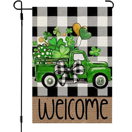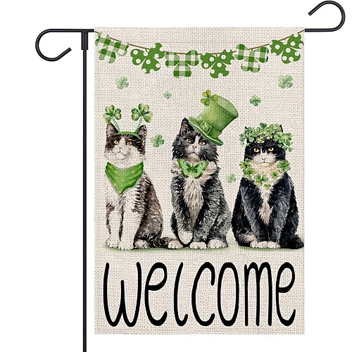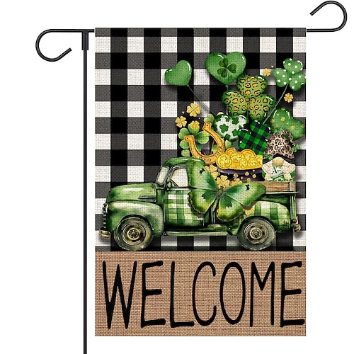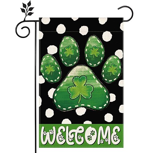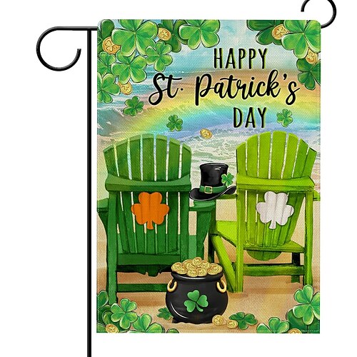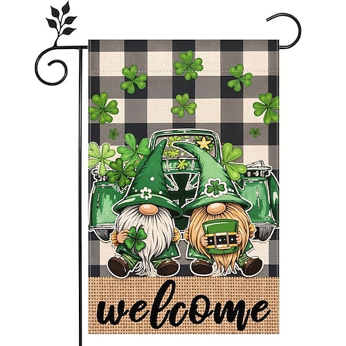 giorno di san patrizio giardino bandiera 12x18 pollici decorazioni esterne benvenuto giardino patio bandiera lucky clover yard gnomi bandiera arcobaleno doppia faccia vacanze bandiere esterne 1 pz