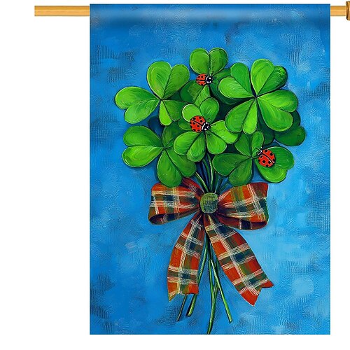 Confezione da 2 bandiere da giardino irlandesi per il giorno di San Patrizio, bandiera decorativa da cortile in lino con stampa bifacciale Lucky Grass Pie
