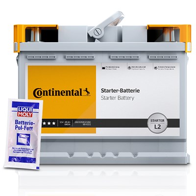 Continental Starterbatterie L2 65Ah 640A + 10g Batterie-Pol-Fett [Hersteller-Nr. 2800012021280] für Volvo, Skoda, Mini, Smart, Mercedes-Benz, Opel, Al