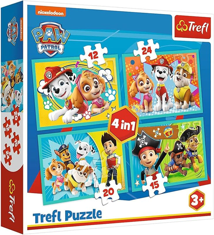 Trefl, TR34346 Puzzle Das lustige Team von Paw Patrol von 12 bis 24 Teilen, 4 Sets, für Kinder ab 3 Jahren