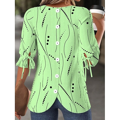 Per donna Blusa Geometrico Elegante Casual Mezza Manica Girocollo Top Regolari Quotidiano Stampato Blu Bianco Giallo Rosa Viola Primavera Autunno