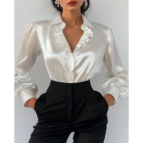 Per donna Elegant Elegante Raso/Satin Blusa Semplice Elegante Manica Lunga Colletto a Camicia Top Regolari Quotidiano Volant Fiocco Nero Bianco Rosso Grigio Autunno