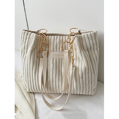 borsa a tracolla in velluto a coste da donna con cinturini in pelle, borsa casual di grande capacità per lo shopping, i viaggi, il lavoro e l'uso quotidiano