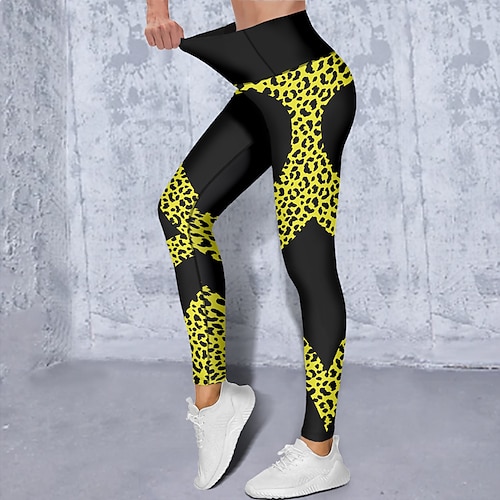 Per donna Pantaloni da yoga Sollevamento glutei Controllo addominale Vita Alta Allenamento in Palestra Corsa Fitness Leggings corti Leopardo Geometria Blu pavone Nero Giallo Autunno Inverno Gli sport
