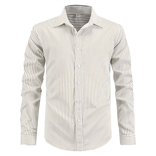 Per uomo Camicia Camicia elegante Camicia con Bottoni A righe Matrimonio Quotidiano Bianco Rosa Blu Viola Manica Lunga Collo ripiegato Primavera Autunno Abbigliamento Bottoni