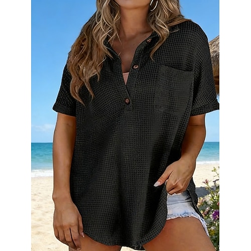 Per donna Camicia Semplice Elegante Vintage Quotidiano Manica Corta Colletto a Camicia Top Regolari Ferie Uscire Nero Bianco Rosa Verde Beige Estate Primavera