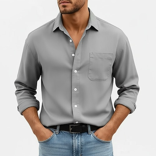 Per uomo Camicia Camicia casual Camicia con Bottoni Nero Bianco Rosa Borgogna Blu marino Manica Lunga Semplice Colletto a Camicia Casuale Quotidiano Tasca Frontale Abbigliamento Elegante Moda Casual