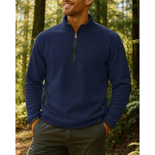 Per uomo Felpa in pile Felpa con zip corta Cappotto invernale Inverno All'aperto Calore Termico Top Bianco Giallo Verde militare Blu scuro