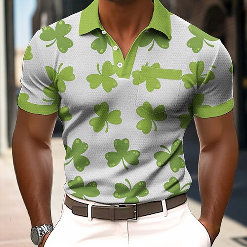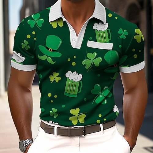 Polo a maniche corte Shamrock da uomo per il Giorno di San Patrizio Camicie a maniche corte Camicie con colletto Casual Outdoor Abbigliamento quotidiano Abbigliamento da festival Stampa 3D Bottoni