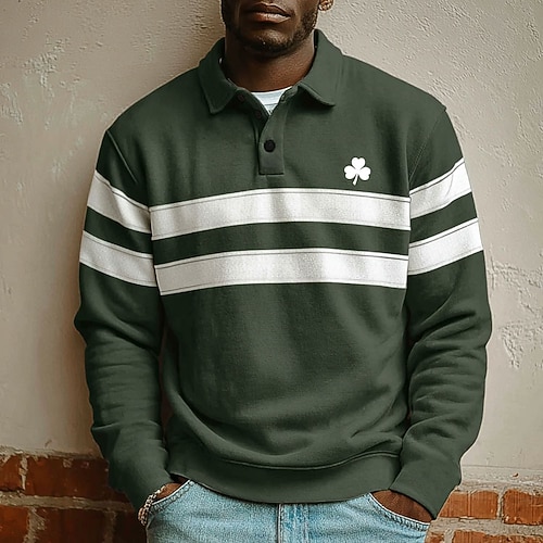 Polo a maniche lunghe a righe orizzontali Shamrock per uomo per il Giorno di San Patrizio camicie a colletto abbigliamento sportivo abbigliamento casual outfit per festival stampa 3D primavera
