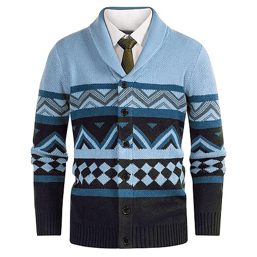 Per uomo Felpa Cardigan Maglione Fair Isle A Coste Maglia Top Regolari Lavorato a maglia Geometrico Collo a scialle Vacanza Moda Casuale Abbigliamento quotidiano Abbigliamento Primavera Autunno