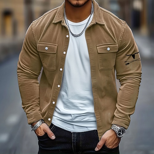 Per uomo Cowboy Camicia di Velluto a Coste Giacca camicia Sopracamicia Manica Lunga Vintage Western All'aperto Streetwear Abbigliamento Quotidiano Autunno Inverno Collo ripiegato Camicie con