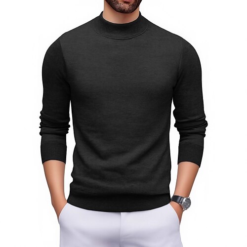 Per uomo Maglione a collo alto Pullover Maglione Maglione lavorato a maglia A coste Maglia Top regolari Senza nocciolo Liscio Collo alto Tenere al caldo Contemporaneo moderno Informale Da tutti i