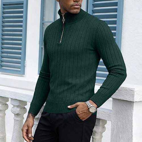 Per uomo Felpa Maglione elegante Maglione A Coste Maglia Corto Cerniera Lavorato a maglia Tinta unica Collo alla coreana Elegante Essenziale All'aperto Quotidiano Abbigliamento Autunno Inverno Nero