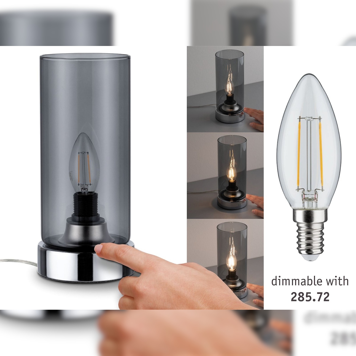 Paulmann Tischleuchte Pinja E14 max. 20W Chrom Rauchglas 77056