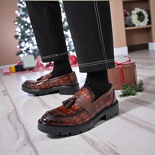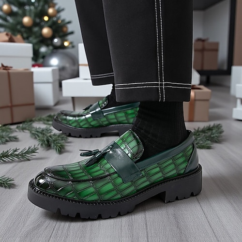 mocassini da uomo con nappe in pelle di coccodrillo verde - look casual ed elegante per Natale, perfetti per feste e celebrazioni festive