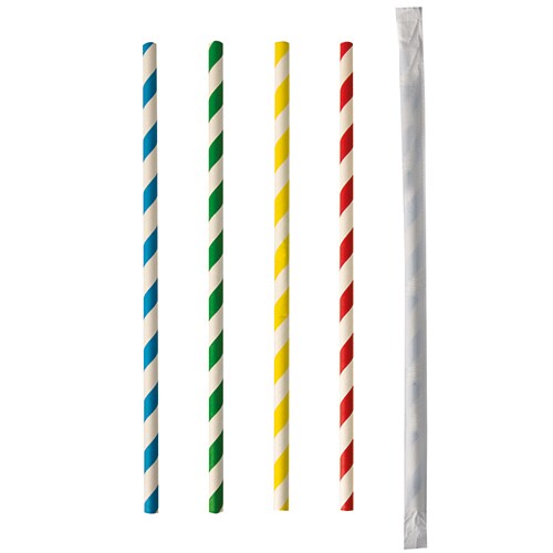 PAPSTAR 1000 Trinkhalme, Papier Ø 6 mm · 20 cm farbig sortiert "Stripes" einzeln gehüllt