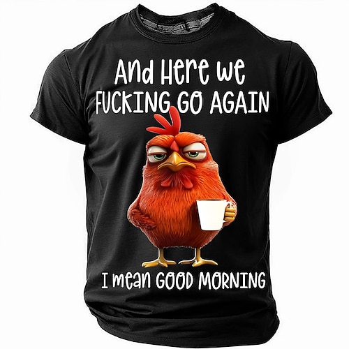 T-Shirt Grafica da Uomo Gallina Cancro Divertente 'Ecco Che Si Ricomincia Volevo Dire Buongiorno' Umorismo Di Stile Di Vita