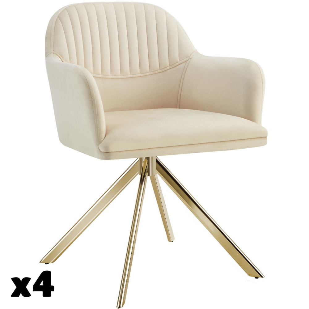 Set di 4 sedie imbottite girevoli a 360° velluto crema/oro