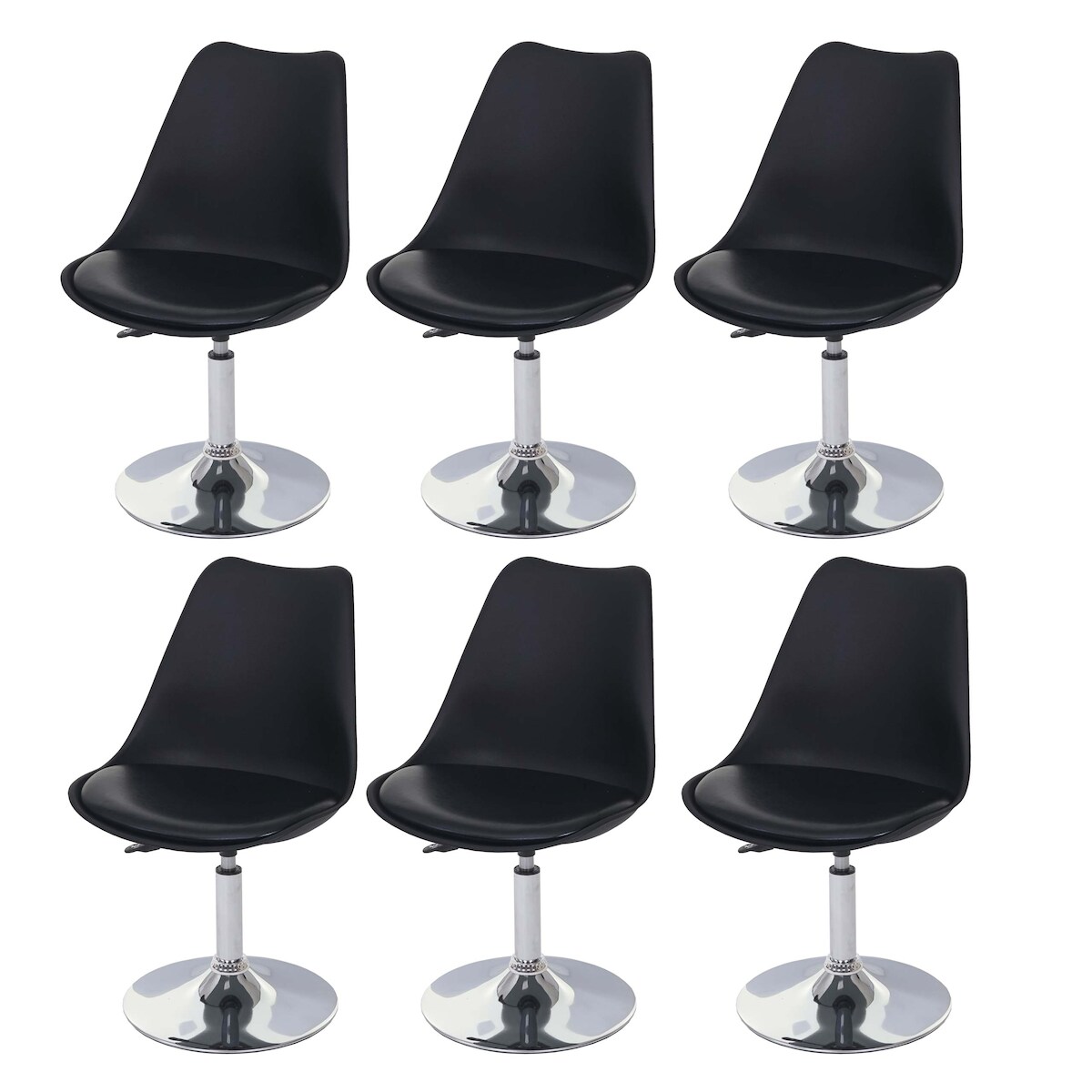 Mendler 6er-Set Drehstuhl Malmö T501, Stuhl Küchenstuhl, höhenverstellbar, Kunstleder ~ schwarz, Chromfuß