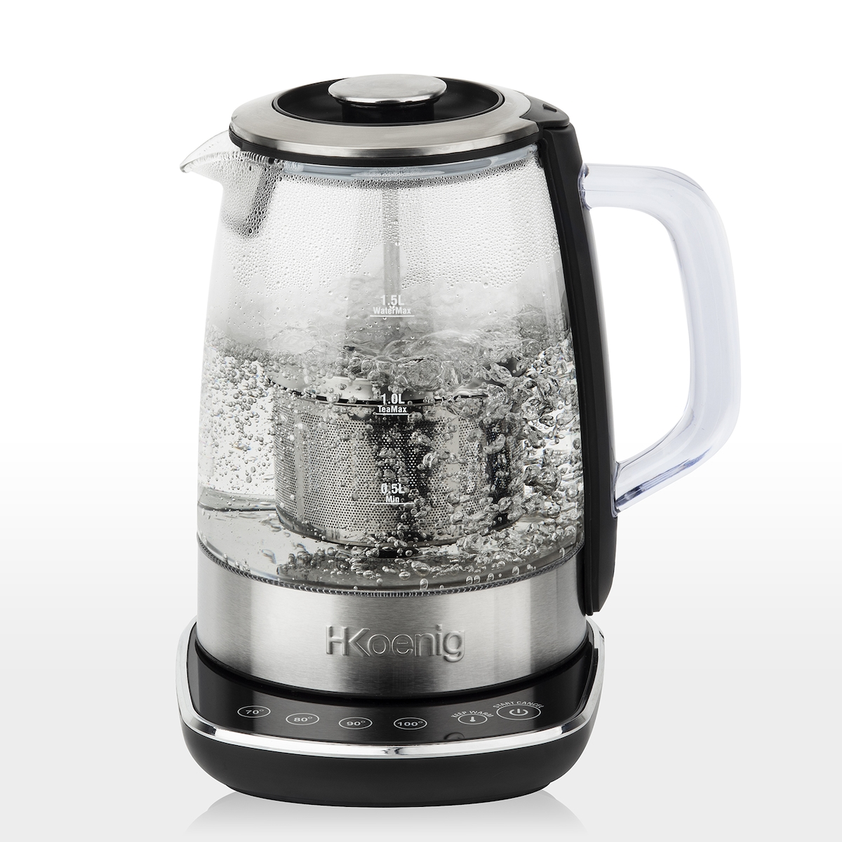 H.Koenig Instant T Teekanne / Elektrischer Glas-Wasserkocher TI600 / mit Edelstahl-Teefilter