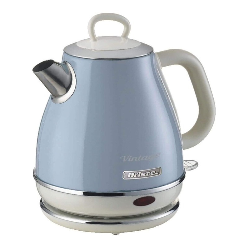 Ariete Vintage Wasserkocher 2868, Retro Elektrischer Wasserkocher mit Kabellosem 360°-Sockel, Abschaltautomatik, 1 L Fassungsvermögen, Edelstahl, 1600W, Blau