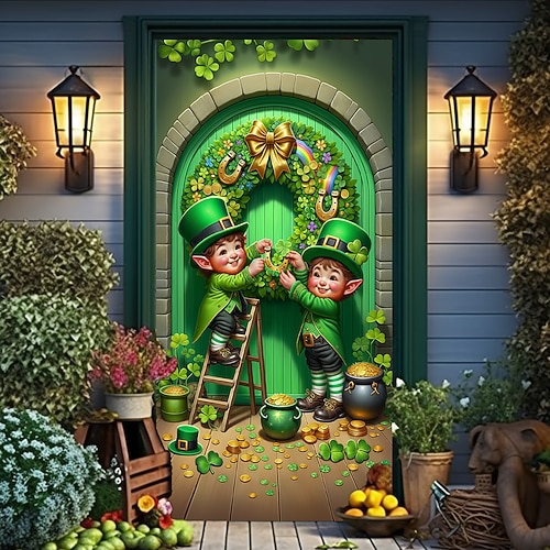 Tenda per porta di San Patrizio, design di folletto, tema irlandese verde, decorazione festiva per porta per la celebrazione di San Patrizio e arredamento per la casa.