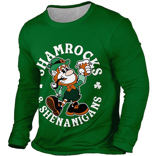San Patrizio Per uomo Grafico Birra dell'Oktoberfest folletto Maglietta Camicia a Maniche Lunghe Manica Lunga maglietta Stampa 3D Girocollo Camicia Sport Moda Designer Feste Giorno di San Patrizio