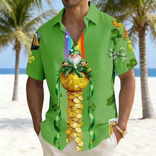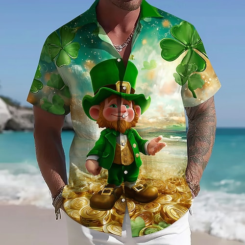 Festa di San Patrizio Per uomo Trifoglio Divertente folletto Camicia Camicia con Bottoni Manica Corta Moda Casual Feste Ferie Estate Primavera Collo ripiegato Stampa 3D camicie con colletto verde 1
