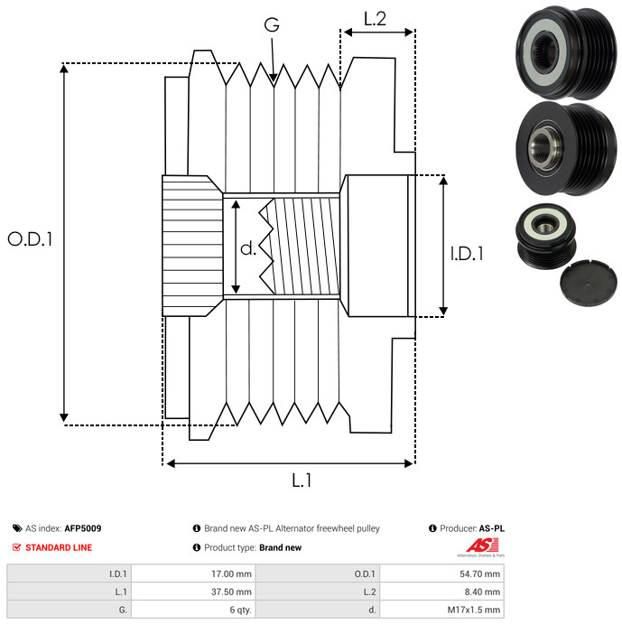 AS-PL Generatorfreilauf AFP5009 für MITSUBISHI MAZDA SUBARU LF18-18-W11A 1800A061 LF18-18-330