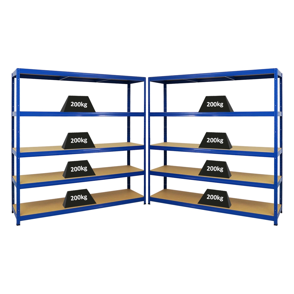 PROREGAL Mega Deal | 2x Schwerlastregal Giant Elephant | HxBxT 180x180x45cm | Fachlast 200kg | Blau | Garagenregal, Lagerregal, Steckregal