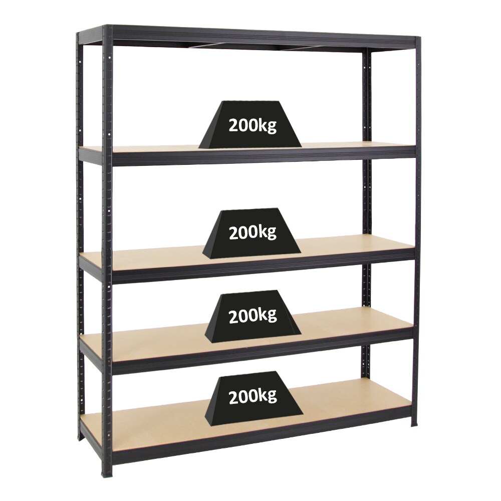 PROREGAL Mega Deal | 5x Schwerlastregal Giant Ragnar | HxBxT 200x100x50cm | 5 MDF-Platten-Ebenen | Fachlast 175kg | Schwarz | Stecksystem Lagerregal