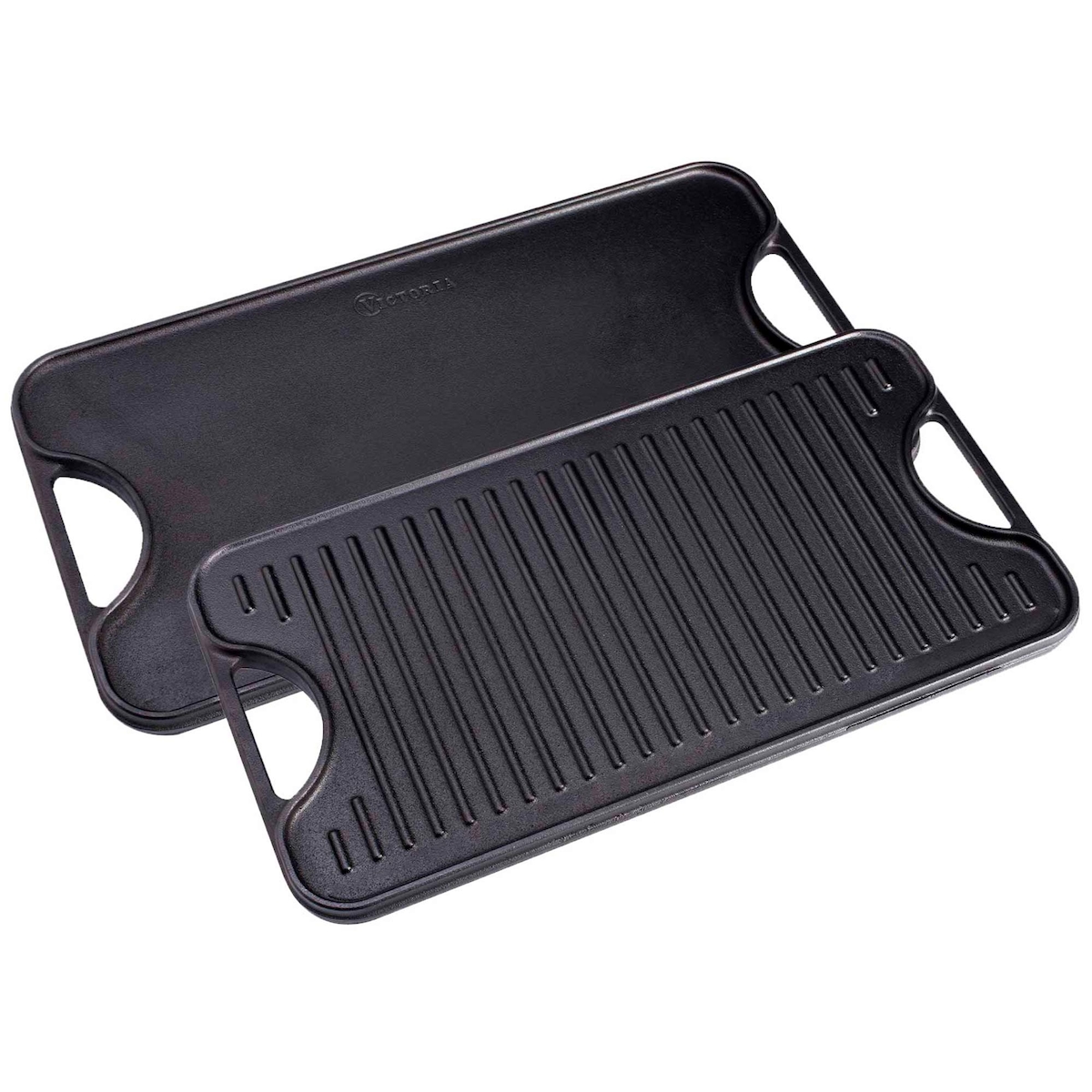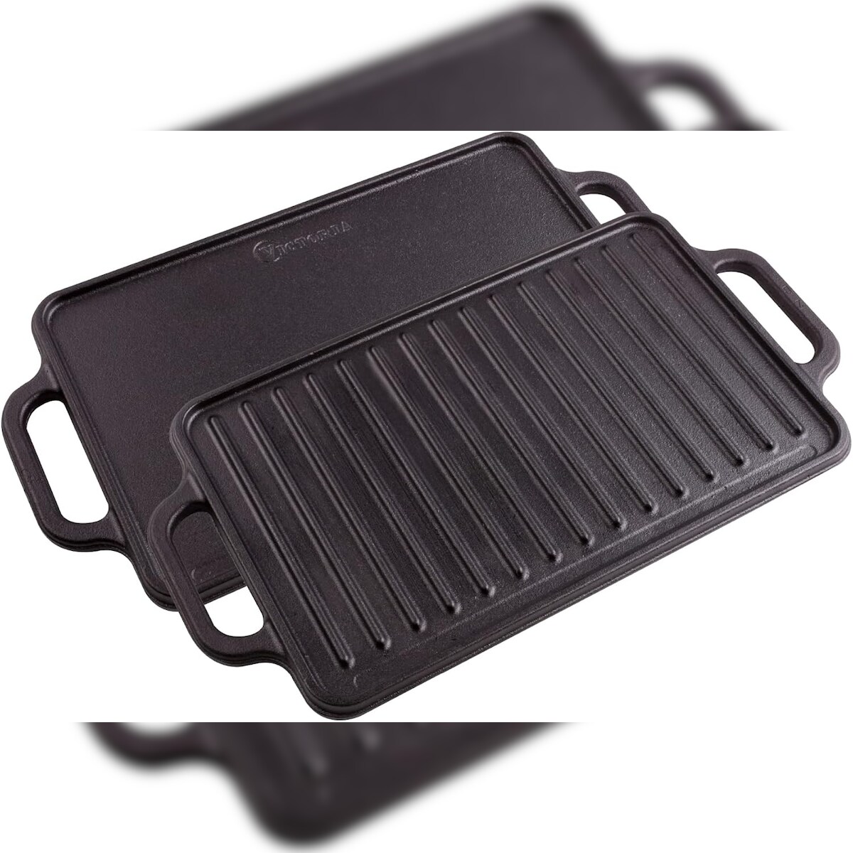 Victoria Grillplatte Gusseisen Induktion Grillpfanne 33 X 21cm für Feuer, Grill ohne PTFE, VIC-36058, Schwarz