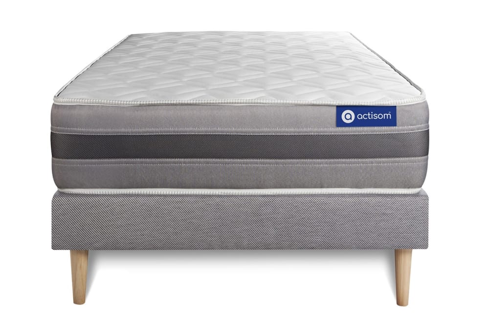 Actisom Ensemble 140x190 Matelas Hybride Sommier kit Gris
