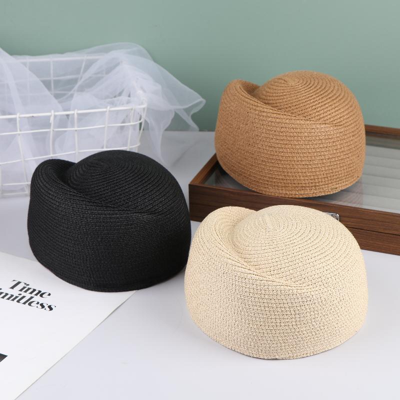 Ladies Solid Color Straw Beret Hat Summer Sun Cap Hostess Hat For Women Retro Versatile Casual Painter Hat Mountaineering Scarf black