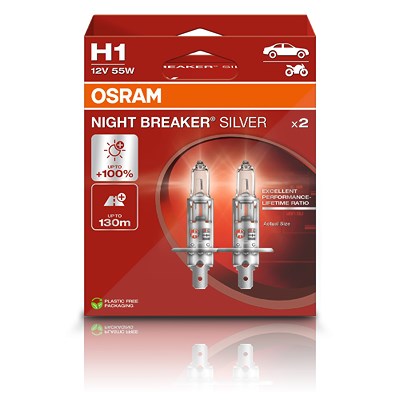 Osram H1 NIGHT BREAKER SILVER Glühlampe DuoBox [Hersteller-Nr. 64150NBS-2HB] für Ford Usa, Mazda, Kia, Dacia, Rover, Mitsubishi, Toyota, Alfa Romeo, V